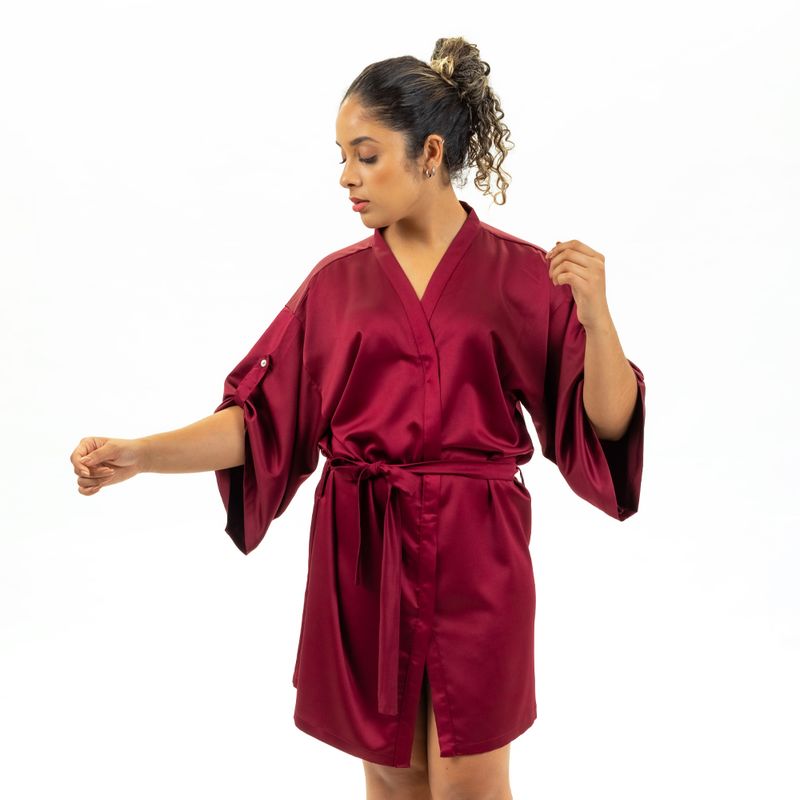 Made of crepe, it is light, fluid, bringing great comfort and elegance to moments of rest. Robe with wide sleeves, a front closure and a belt to tie at the waist. Washing instructions: Wash at maximum temperature 30ºc (86ºf). Do not use bleach/chlorine. It shall not be put on dryers. Iron at a maximum temperature of 110º. In dry cleaning, use hydrocarbon or perchloroethylene.